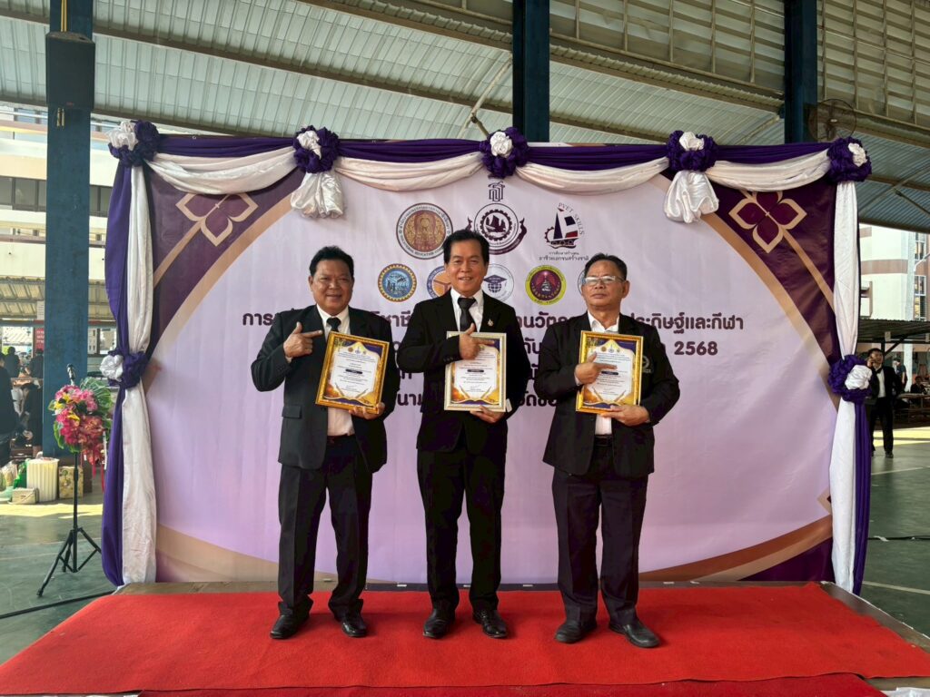 วันที่ 17 กุมภาพันธ์ พ.ศ. 2568 สำนักงานคณะกรรมการอาชีวศึกษา ร่วมกับสมาคมวิทยาลัยเทคโนโลยีและอาชีวศึกษาเอกชนแห่งประเทศไทยในพระราชูปถัมภ์ สมเด็จพระเทพรัตนราชสุดาฯ สยามบรมราชกุมารี ได้จัดการแข่งขันทักษะวิชาชีพระดับชาติ ประจำปีการศึกษา 2568 ทางวิทยาลัยเทคโนโลยีร้อยเอ็ด ได้ส่งนักเรียนนักศึกษาเข้าร่วมการแข่งขันที่จังหวัดขอนแก่น และผู้อำนวยการวิทยาลัยเทคโนโลยีร้อยเอ็ด พร้อมทั้งคณะครู ได้รับรางวัล “ผู้บริหารดีเด่น” และ “ครูดีเด่น”